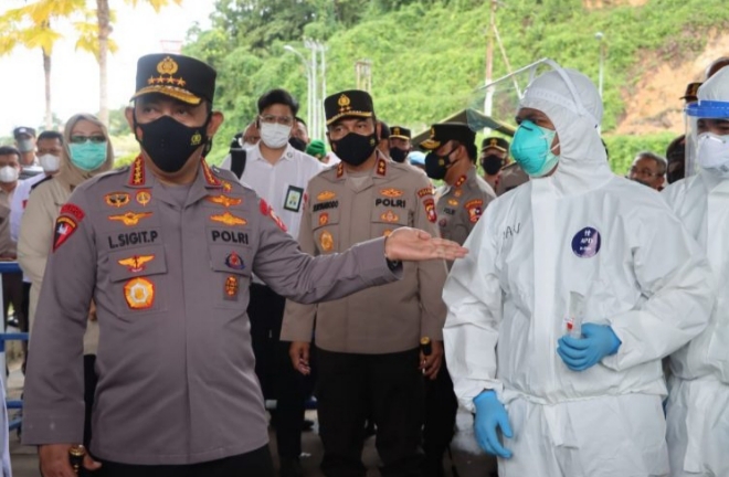 JAKARTA(ReferensiAktualMAPJ.com)Kapolri Jenderal Listyo Sigit Prabowo mengecek langsung penerapan protokol kesehatan (prokes) dan prosedur pelaksanaan karantina bagi para Pelaku Perjalanan Luar Negeri (PPLN) di Pos Lintas Batas Negara (PLBN) Entikong, Kalimantan Barat (Kalbar).