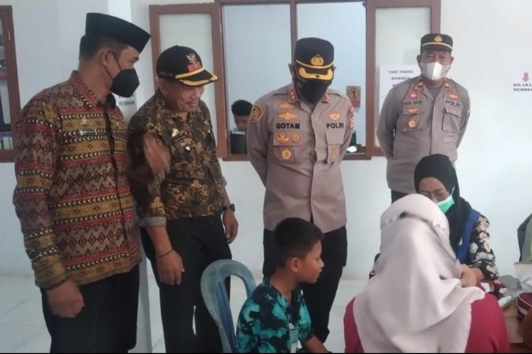 Takalar-referensimapj.com – Kapolres Takalar AKBP Gotam Hidayat S.Ik.,M.Si bersama Kepala Desa Bontokassi Kecamatan Galesong Selatan Muh. Aksin Suarso. SS memantau langsung pelaksanaan kegiatan Vaksinasi untuk masyarakat di Desa Bontokassi Kecamatan Galesong Selatan, Kamis (19/5/22).