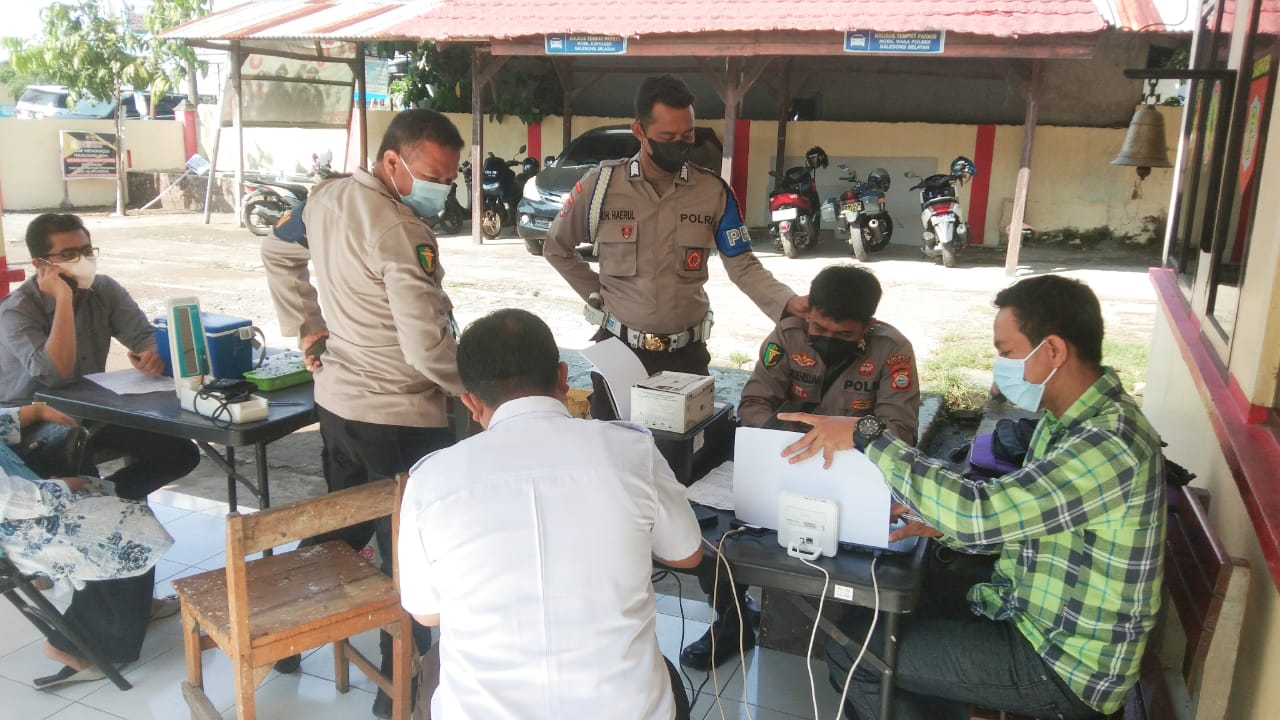 Kali ini Tim Vaksinator Sikes Polres Takalar yang dipimpin langsung oleh Kasikes Polres Takalar IPDA Achmad Afandi S.Kep menggelar Vaksinasi di Kantor Mapolsek Galesong Selatan (Galsel), Kecamatan Galsel, Kabupaten Takalar. Rabu, 25 Mei 2022.