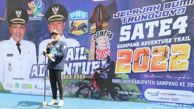 Dalam sambutannya, Bupati Sampang H. Slamet Junaidi mengapresiasi event Sampang Adventure Trail (SATE) 4 dengan rute Jelajah Bumi Trunojoyo.