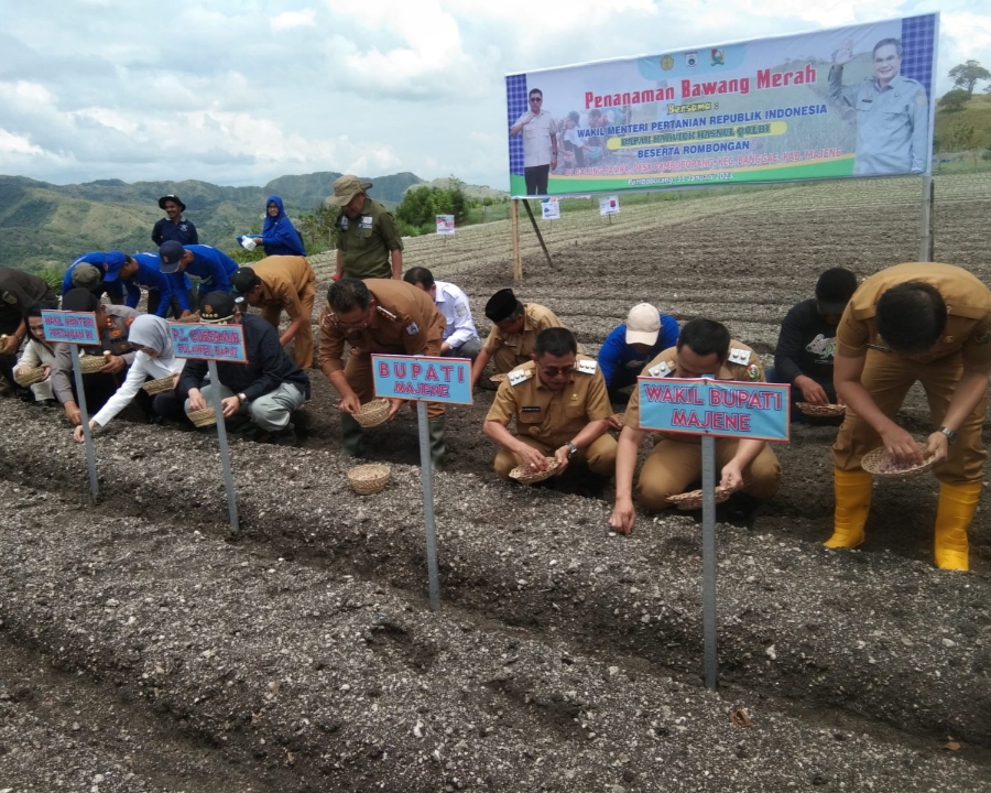 Wakil Menteri Pertanian Republik Indonesia (Wamentan RI) meninjau perkebunan sekaligus panen raya bawang merah.