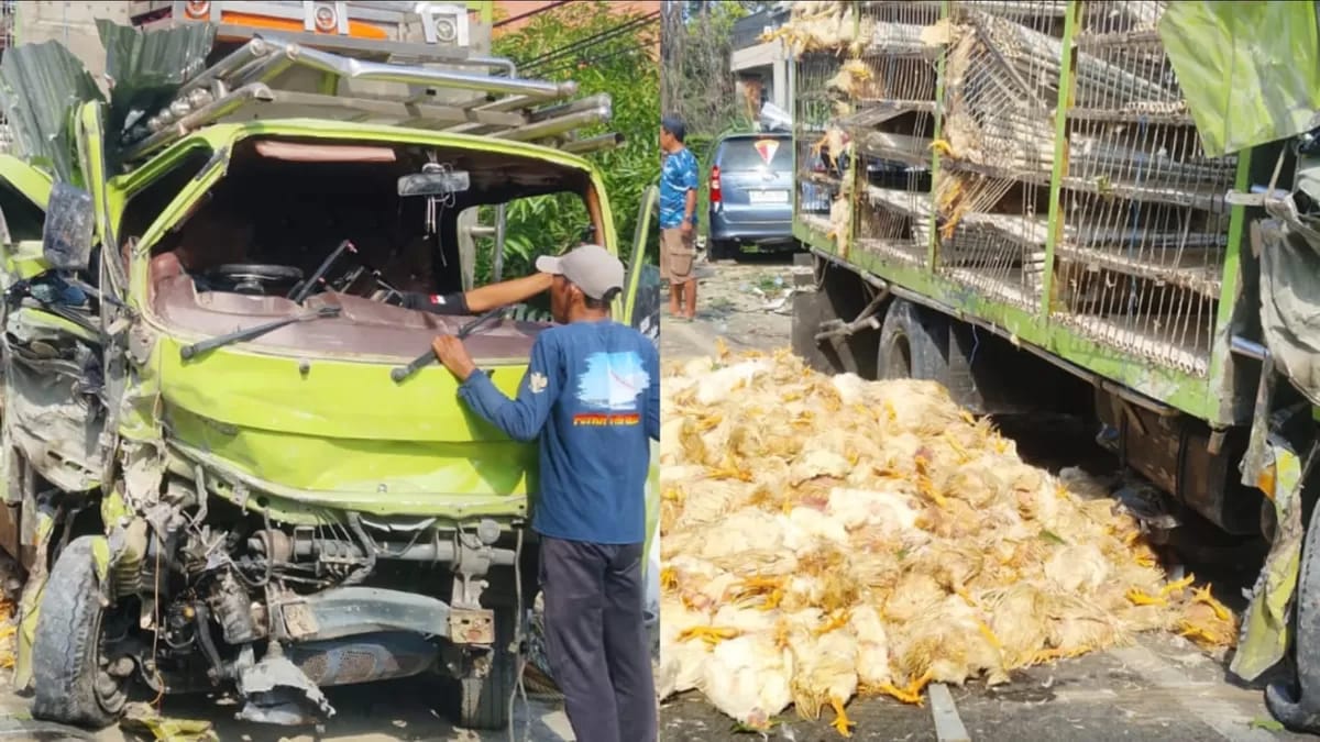 dalam peristiwa ini Kondisi truk ringsek parah di bagian depan. Namun, pemandangan paling pilu ada di bak belakang. Ribuan ayam itu tumpang tindih.